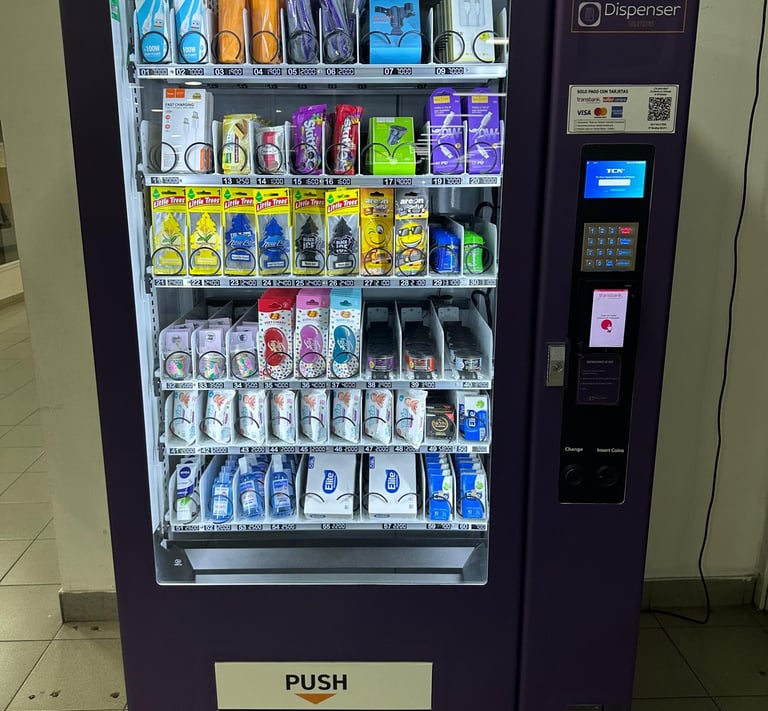 En Dispenser Solutions, ofrecemos accesorios automotrices a través de máquinas dispensadoras en lugares estratégicos, facilitando el acceso a productos esenciales para conductores en áreas de alto tráfico.